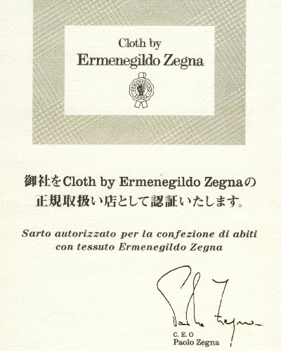 日本国内のゼニアの生地は必ずゼニアジャパン社を経由することになっています。それが世界的ハイレベルブランドとしてブランド力を保つことにもなりますし、品質を保証し、価格崩れを防いでいます。